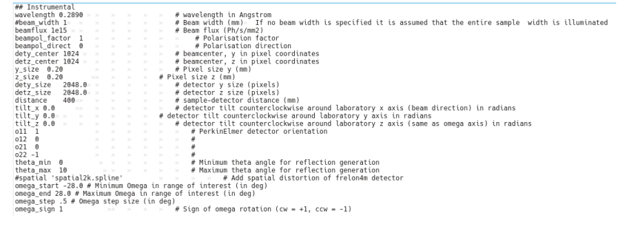 From the original manual, PolyXSim is a program which simulates 3DXRD diffraction patterns of polycrystalline (multiphase) materials for the “far-field” case, as it is called in 3DXRD community, e.g. with the detector far away from the sample (i.e. at 400 mm for instance). For high pressure diamond anvil cell experiments, it is the standard case.